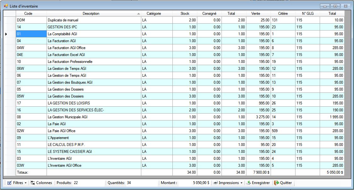 Charge le catalogue des produits de l'inventaire.